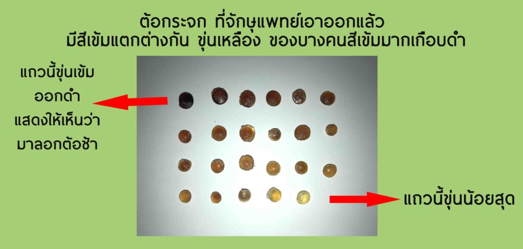 5. ปวดตา หรือปวดศีรษะในรายที่เริ่มมีต้อกระจกมากขึ้น เลนส์เปลี่ยนสีขุ่นมากขึ้น