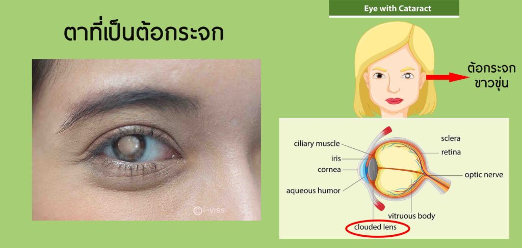 เป็นภาวะที่เลนส์ตาขุ่นมัวเหมือนกระจกฝ้า เนื่องจากเป็นความเสื่อมไปตามวัยของเลนส์ตาเมื่อมีอายุมากขึ้น แต่อาจเกิดจากสาเหตุอื่น เช่น อุบัติเหตุหรือเป็นมาแต่กำเนิด ทำให้การมองเห็นไม่ชัดเจน